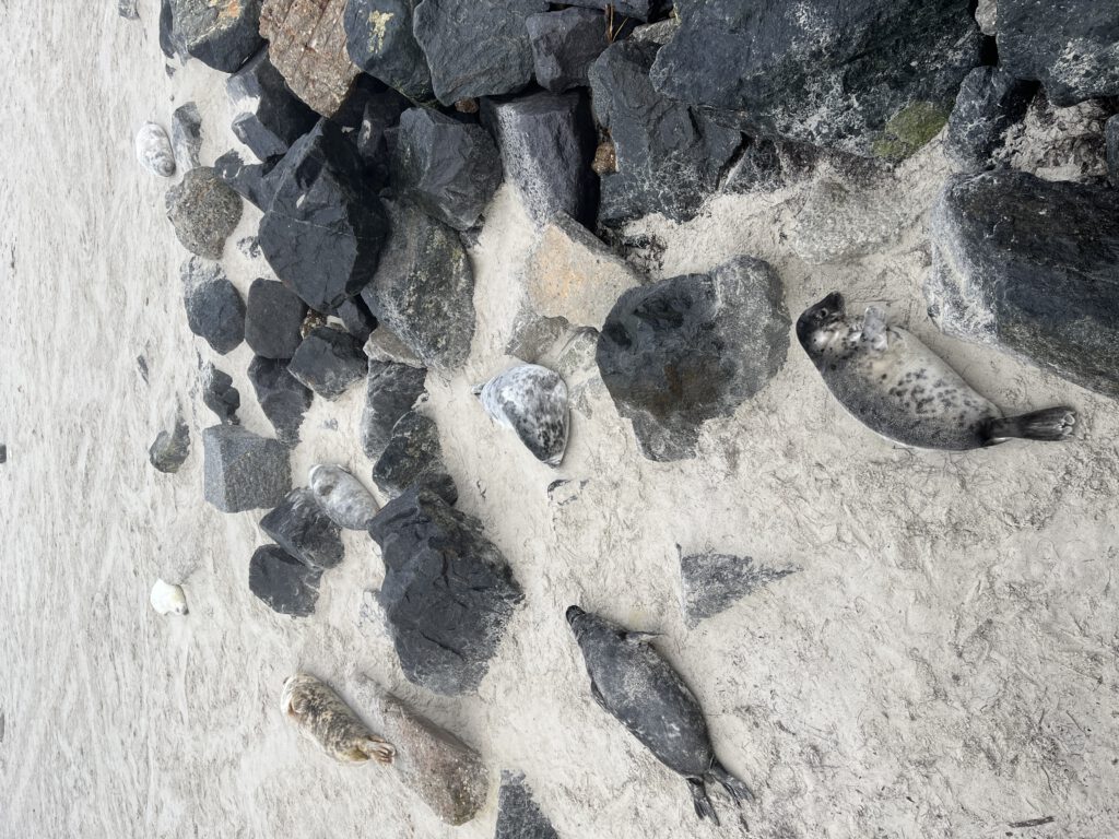 Auf der Düne von Helgoland können zahlreiche Kegelrobben mit
