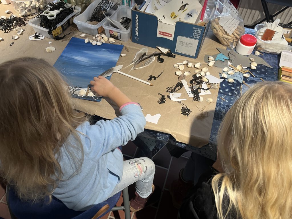 Hier werden Spülsaumbilder gebastelt